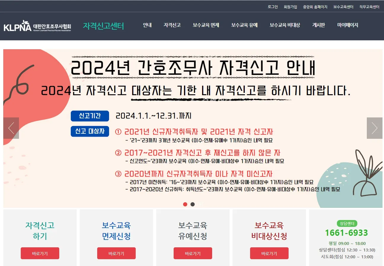 자격신고 역시 보수교육신청과 같이 대한간호조무사협회 공식 홈페이지를 통해 신고합니다.