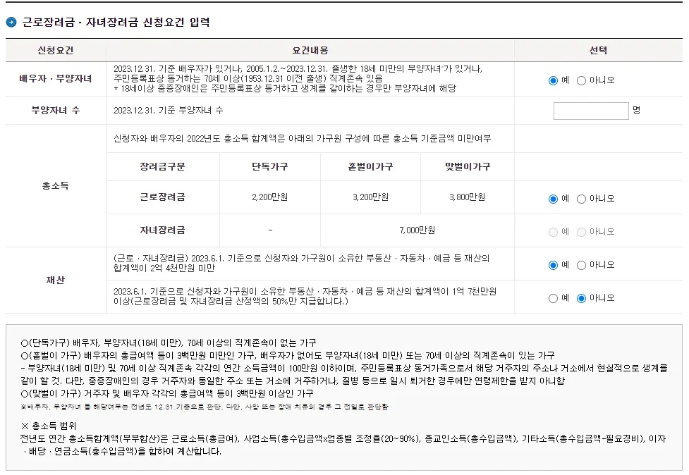 근로장려금 신청자격