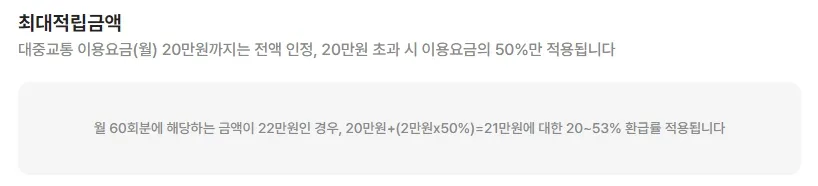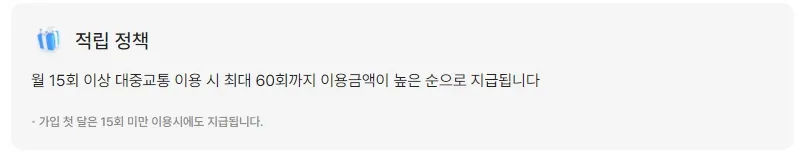 월 15회 이상 대중교통 이용 시 최대 60회까지 이용금액이 높은 순으로 지급됩니다.