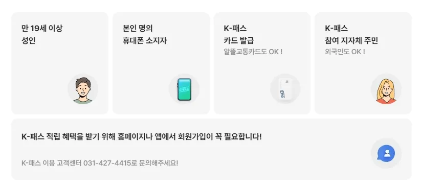 K패스 교통카드 고객센터 031-427-4415