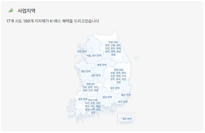 K패스 교통카드는 전국 189개 시군구에서 사용 가능 합니다.
